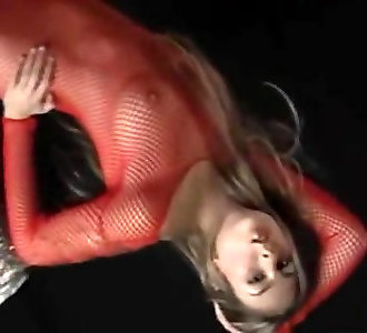 pulcino in crimson mesh calze ottiene un enorme dildo nella sua figa regina noir