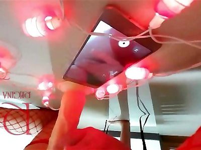 giocare con grande dildo in calze a rete rossa. dea regina noir