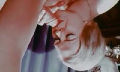 Sizzling platinum-blonde in super-sexy lingerie and stockings swallows cum and masturbates