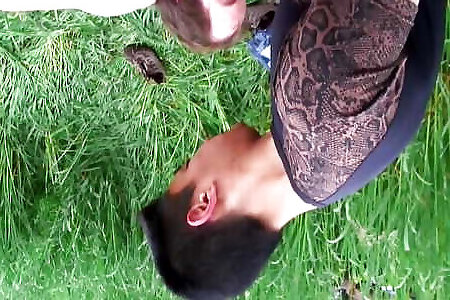French dark-haired fledgling cougar has outdoor romp