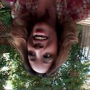 Nasty Asian slut plays with big toy outdoors - amateur homemade