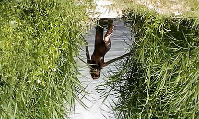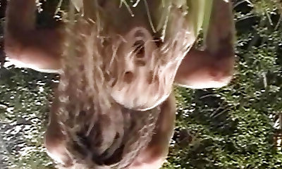 Puny titted German lady getting her pussy poked in the backyard