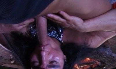 Foxy cowgirl gives an alluring oral job in an epic retro clamp